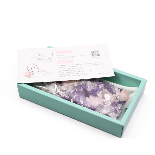 このバランスが、どちらかに偏りすぎていると感じた時に、浄化の「クリスタル」や、愛の石の「ローズクォーツ」、癒し効果の「アメジスト」をミックスしたピローを使って『マインドフルネス』になりましょう。