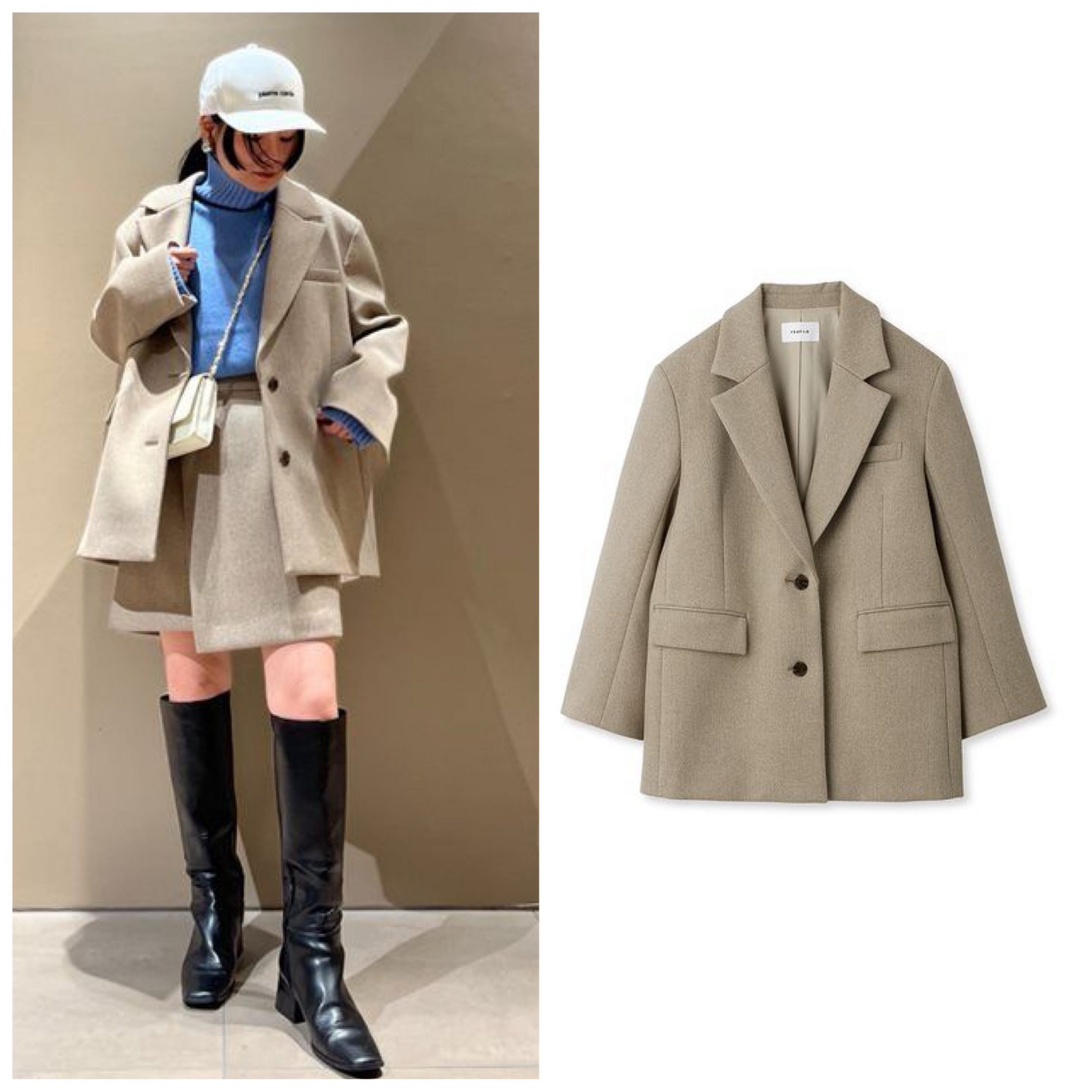 1.同素材のジャケットと合わせてセットアップ風に着る