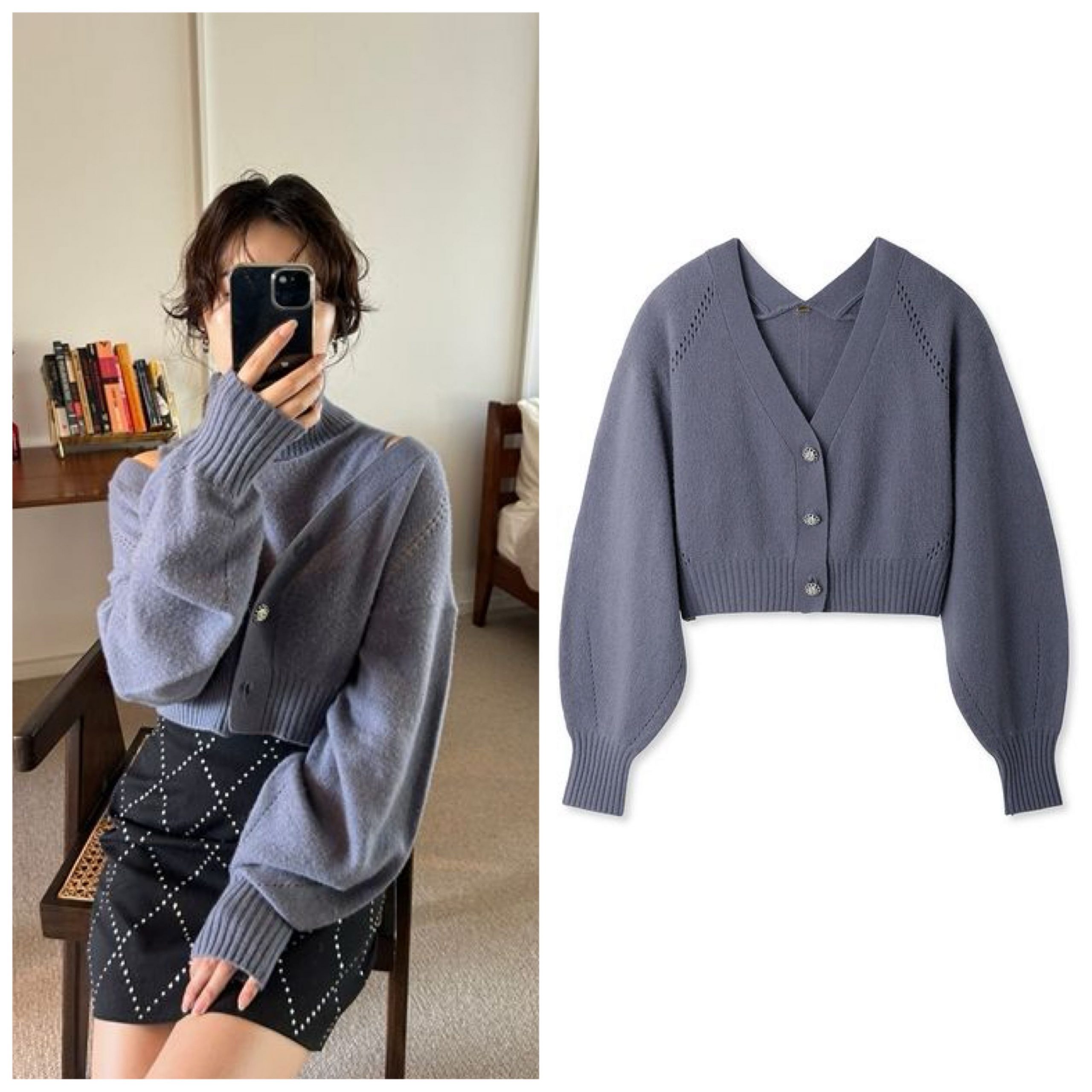 今季のトレンドでもある、クロップド丈のカーディガン。ミノボトムとのバランスもよく、品のあるお嬢さんコーデに仕上げてくれます。