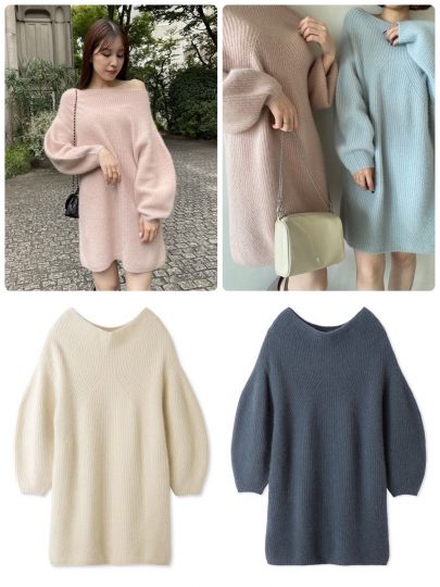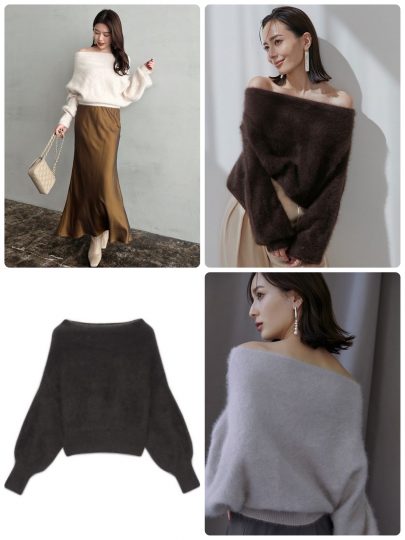 ラクーンのふわふわとしたタッチ×オフショルダーデザインで、上品さと色っぽさを兼ね揃えた1枚。身頃もスリーブもゆったりしつつ裾はキュッと絞られているので、メリハリのあるシルエットが完成します。