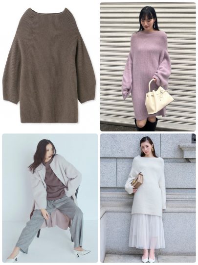 ・あざとさがあるニットワンピ。体型をカバーしてくれるのに着膨れしない。