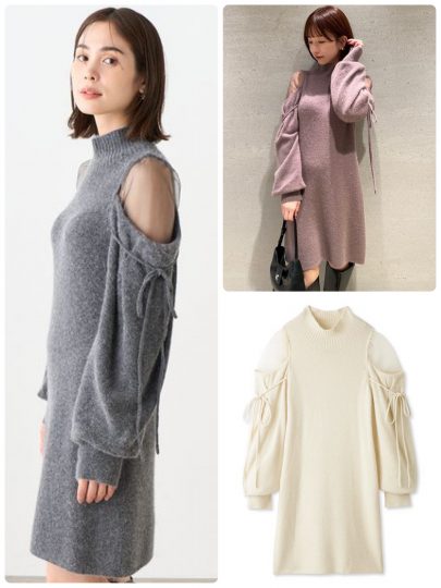 今季トレンドのミニ丈はロングブーツとも相性◎。肩まわりがシースルーになっているため、色っぽい肌見せが叶います。アイボリー、グレー、モカ、ラベンダーのニュアンスたっぷりなカラー展開。