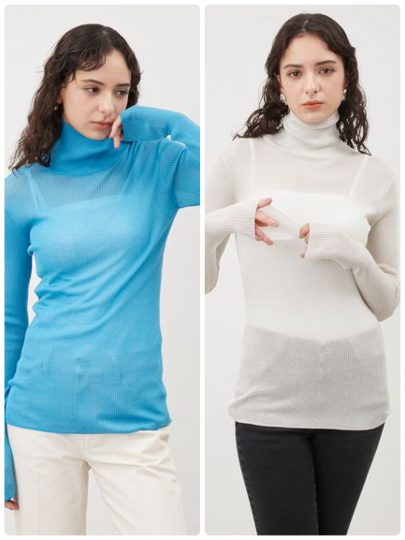 レイヤードが映えるシアーニットの薄手タートル