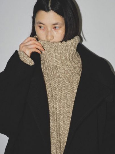 小顔に盛れるざっくりニットのビッグタートル