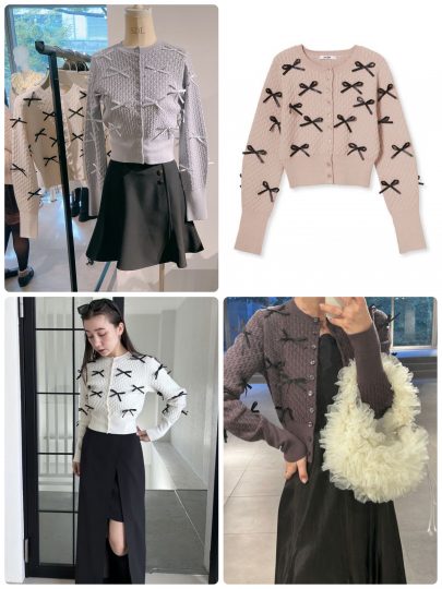 トレンドのリボンを全面にON。ショート丈でウエスト部分がタイトなため、甘すぎずにモードに着こなすことができます! 羽織りとしてはもちろん、ボタンを全て閉じて1枚で着てもOK。
