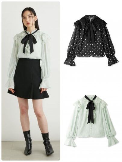 レースフフリルボウタイブラウス/LILY BROWN