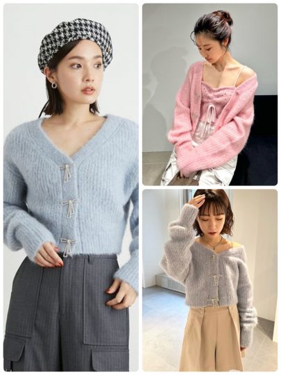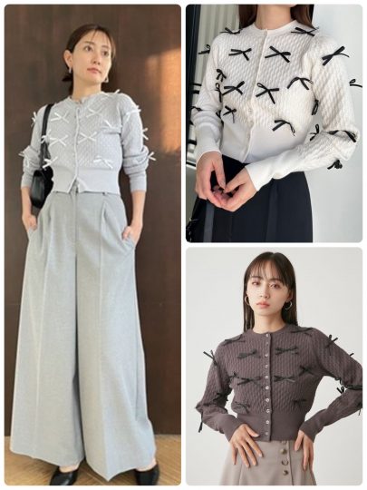 去年大人気だったビジューカーディガン。ビジューをキュートなリボン型に変更し、さらにかわいさに磨きをかけてリバイバルしました。
