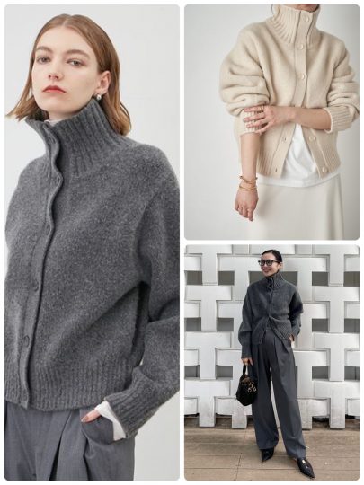 サステナハイネックウールニットカーディガン/MIESROHE
