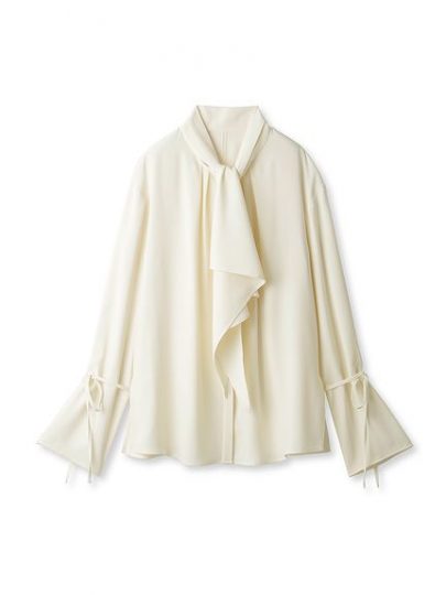 ドレープ感が美しいブラウスに、スカーフのような変形ボウタイをトッピング。華奢なリボンをあしらったベルスリーブが、さりげない仕草までドラマティックに魅せてくれます。レディな洒落感が上昇する一枚は、ジャンスカのインナーにもぴったり。