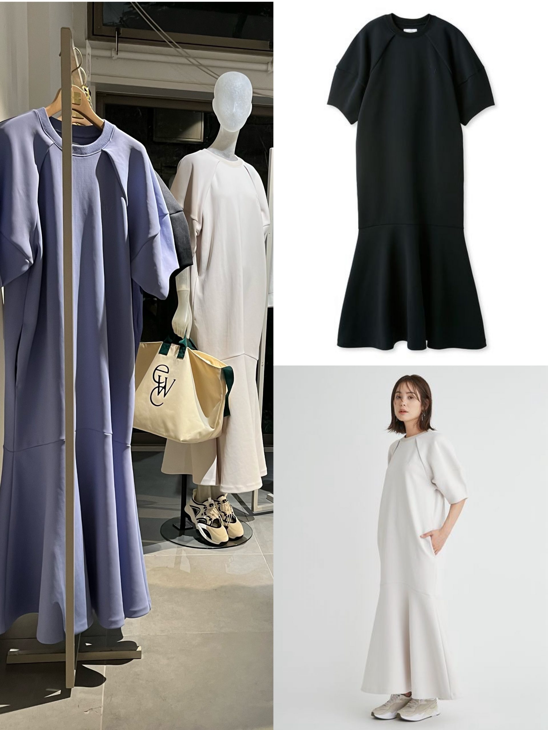 人気のダンボール素材を使った、マーメイドシルエットワンピース。構築的なシルエットが大人っぽい。サイドポケットに加え、嬉しいUVカット機能付き。ewcダンボールマーメイドワンピース /emmi atelier