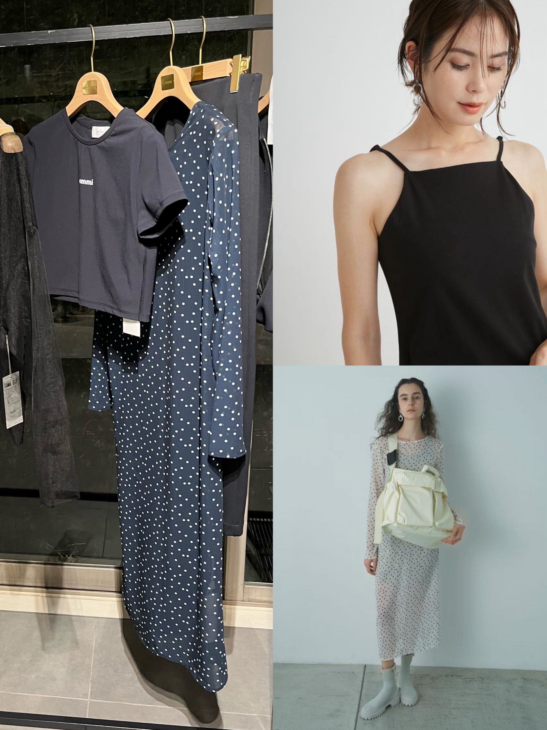 emmiの春夏といえば、ヘルシーな肌見せアイテム。大人に着られるシアーなアイテムやミニも続々登場予定です。