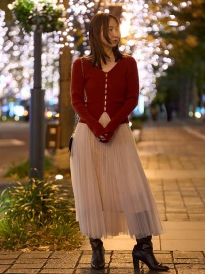 チュールスカート×リブニットのワンピースは、着るだけで旬コーデが完成。