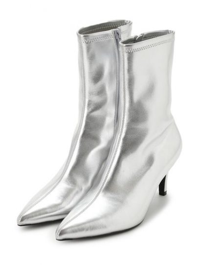 冬のホワイトコーデのアクセントにぴったりなのが、シルバーのショートブーツ。ホワイトコーデだけではなく、黒や明るめカラーとも好相性。