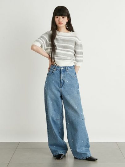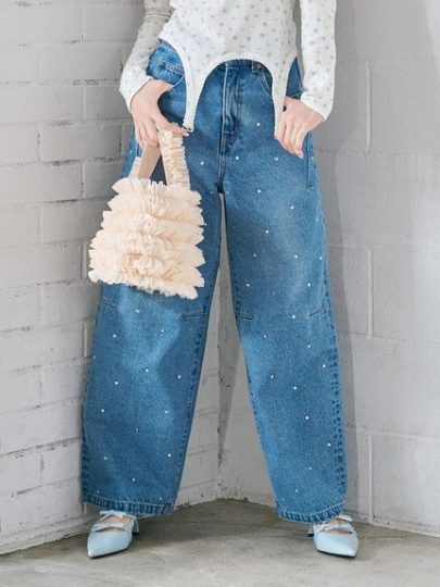 カジュアルなデニムをビジューで女性らしい印象に仕上げた、存在感のあるアイテム。いつものコーデにアクセントをプラス。