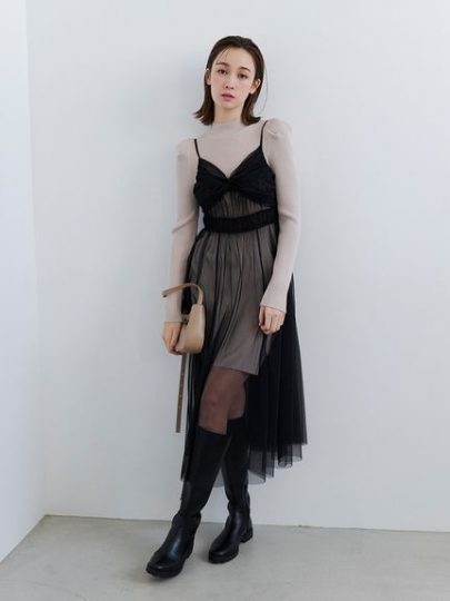 ニットミニワンピースとチュールワンピースのセットアイテムは、単品使いも可能。重ねるだけでマンネリを脱却! コーデの幅が広がる、優秀セット。