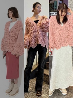 ダークカラーが増える冬コーデを一気に明るくしてくれるピンク! 冬はタートル、春はキャミをインして季節感も楽しめそう。トレンドのグレーと合わせるのもおすすめです。