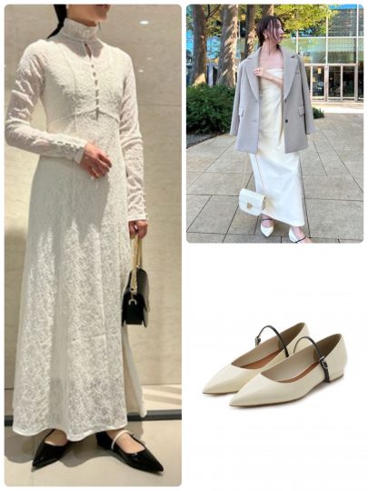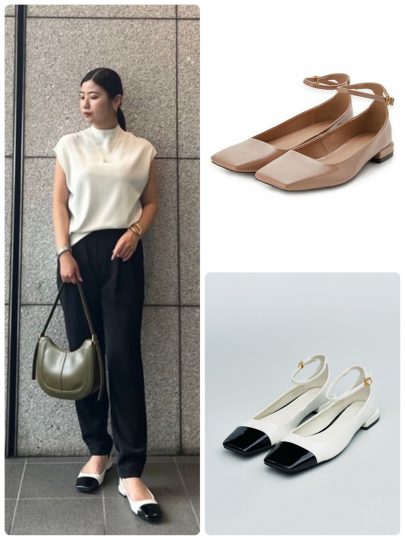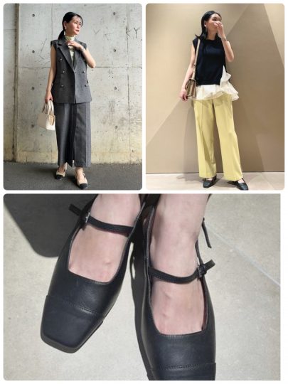 華奢なストラップ使いとスクエアトゥがポイントのメリージェーンパンプスは、牛革製で高級感もたっぷり。低めのヒールでクッション性のあるインソールを仕込んでいるので、デイリー使いもしやすいんです。
