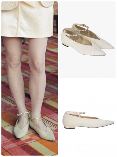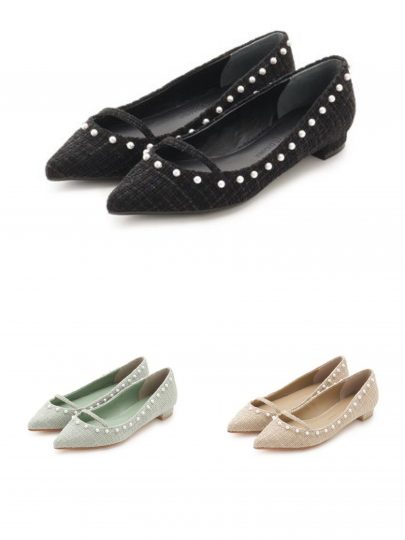 すっきりしたポインテッドトゥのパンプスに、華奢なストラップを加えたきれいめパンプス。上品なパールで縁取って華やかなエッセンスも注入しました♡