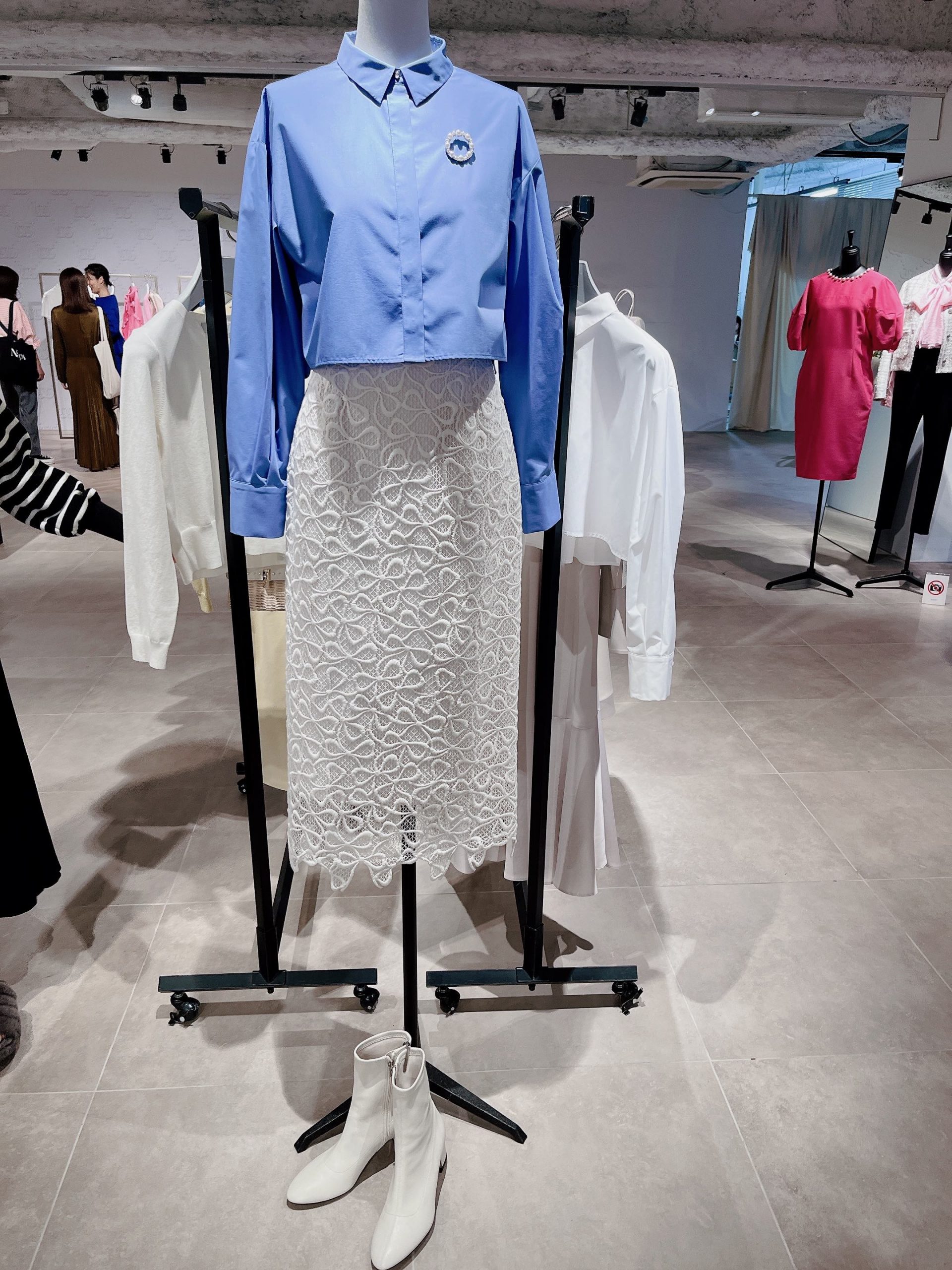 毎シーズン、新作を必ず買うという根強いファンもいる、CELFORDのアイコニック的な存在のリボンレースワンピース。今季はメッシュレースでさらに軽やか。オリジナルリボンメッシュレーススカート/CELFORD