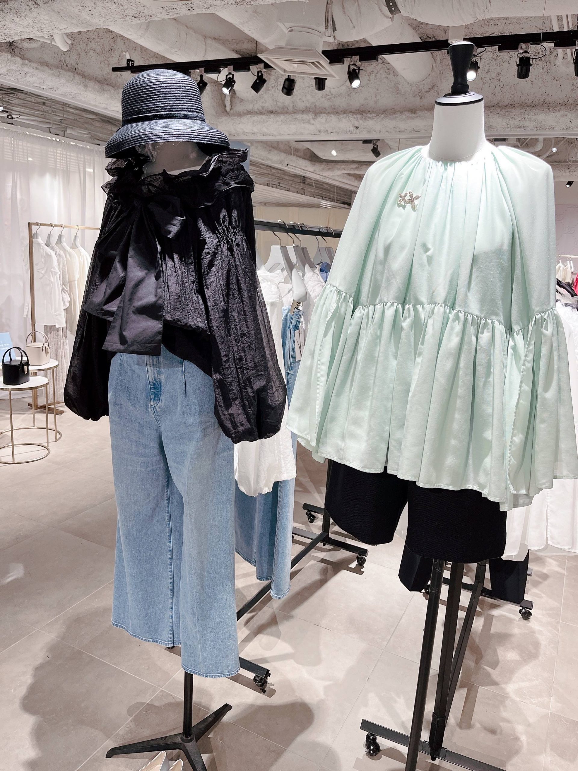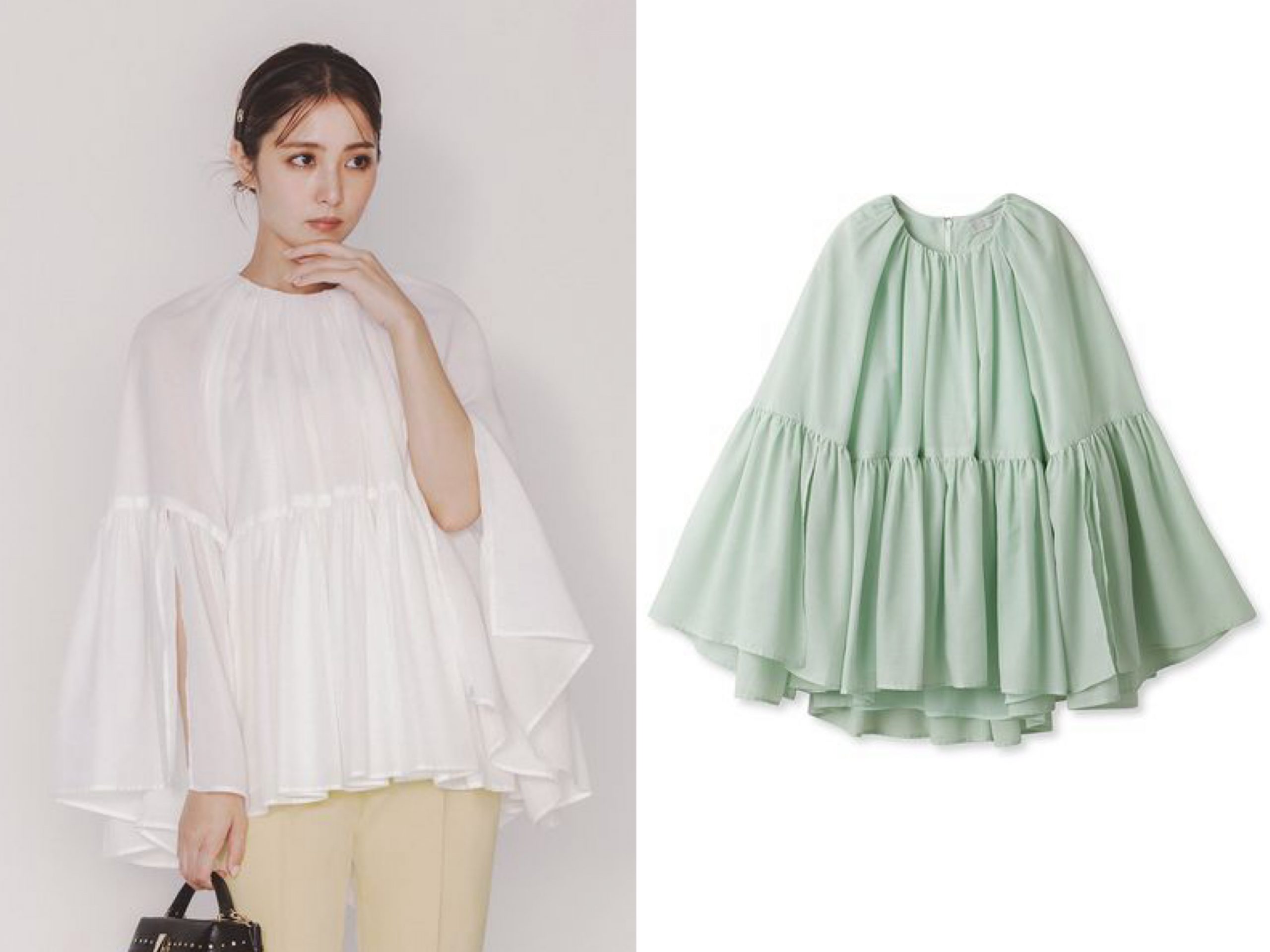 軽くて上品、袖を通すだけで気分が上がる華ブラウスは今季も期待を裏切りません。色が苦手な人はモノトーンでトライ。