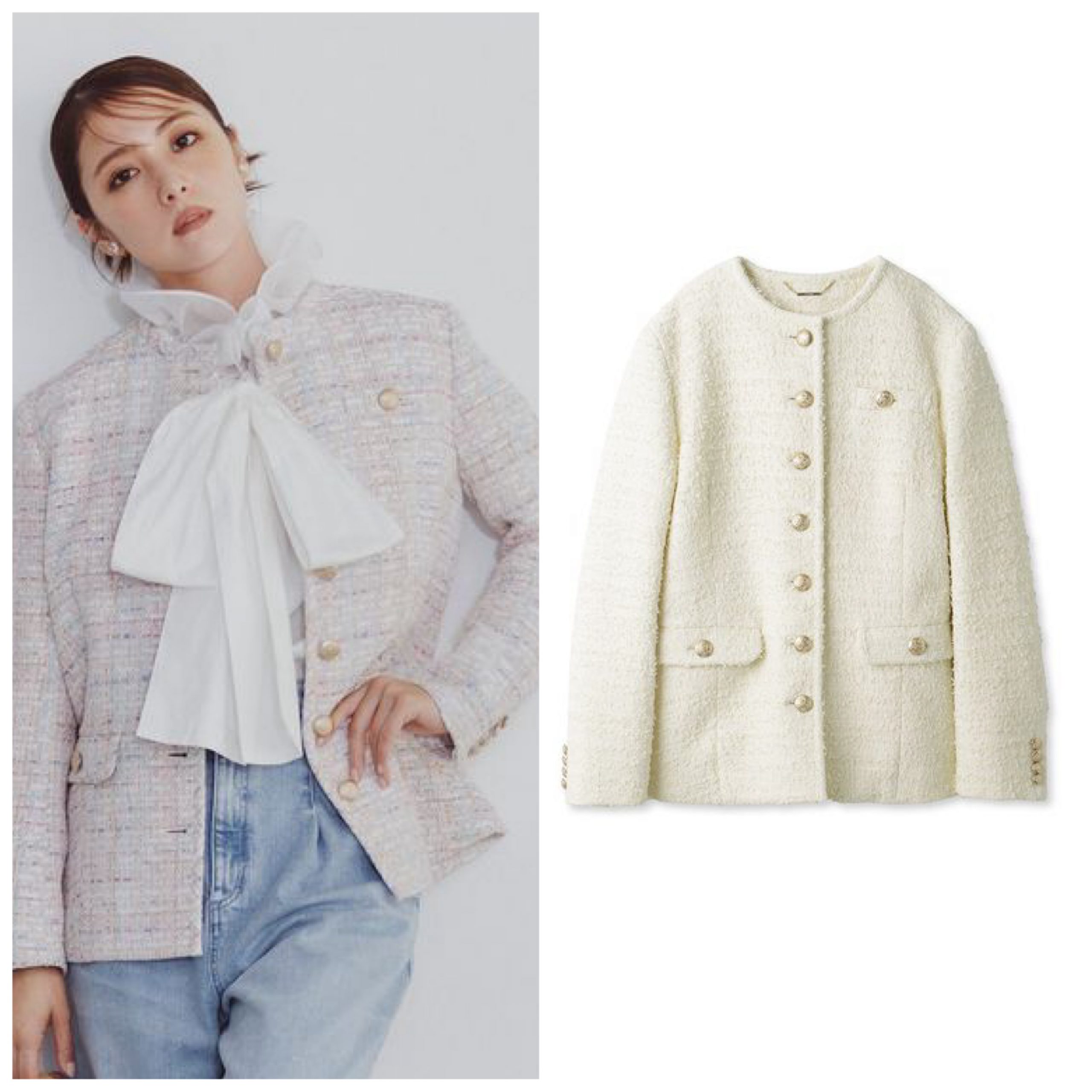 クラシカルなツイードジャケットですが、ちょっと重くなりすぎて苦手、、という人もいるかもしれません。でも春のツイードは色合いが明るく、生地もファンシーツイードを使っているので軽量。デニムなどカジュアルなアイテムにも合わせやすいデザインになっているので、はっきりいって買いです。ファンシーツイードロングジャケット/CELFORD