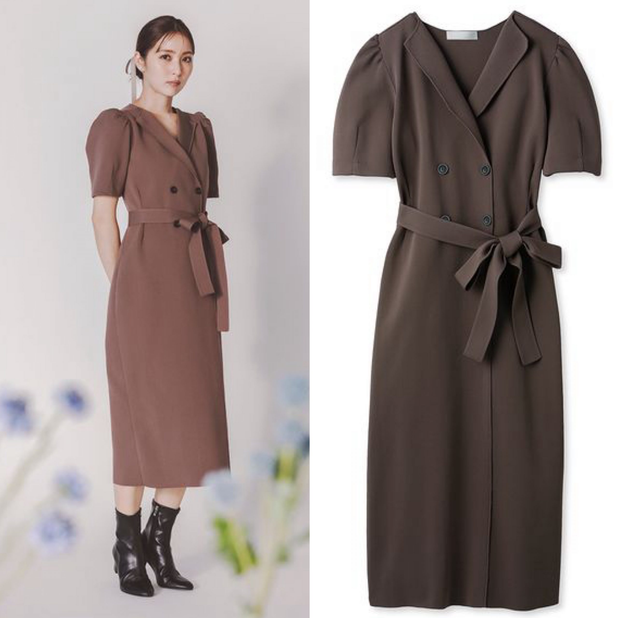 え?もう半袖?と驚く人もいるかもしれませんが、とにかく落ち感が綺麗で細見えが確実に期待できる、大人のニットワンピース。トレンチ風のデザインがポイント。トレンチ風ニットタイトワンピース/CELFORD