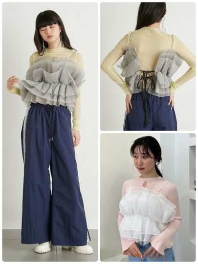 Sustainableチュールフリルコンビカーデプルオーバー