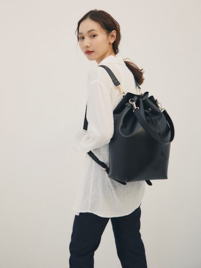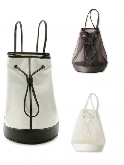 プールバッグのようなリゾートシーンを連想させるシルエットに仕上げた巾着バッグ。リュックのように背負えるショルダーストラップは、長さの調節が可能。シティにもリゾートにもマッチして、大容量のサイズ感も便利。ホワイトとブラウンはコーデに抜け感を与えるシアー素材、ブラックはキャンバス素材での展開です。