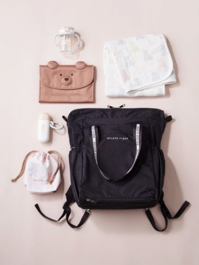ストラップを収納でき、トートとしても使える2WAY。内ポケットとペットボトルが入るサイドポケットなどを備え、収納力も使い勝手も抜群。カジュアルシックなコットン素材は軽量で汚れが拭き取りやすく、ロゴのみのシンプルなデザインはユニセックスで合わせやすい。ママの好レビュー多数も納得。