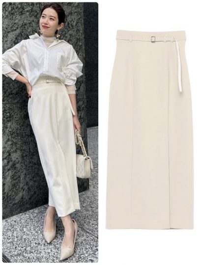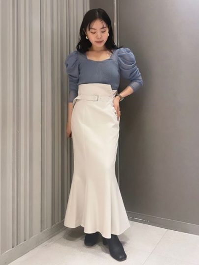 キュッとくびれたマーメイドシルエット+ハイウエストで脚をスラリと見せてくれるスカートで、スタイルアップ。