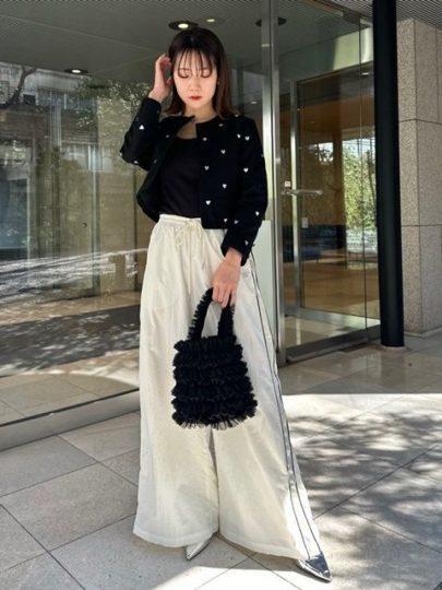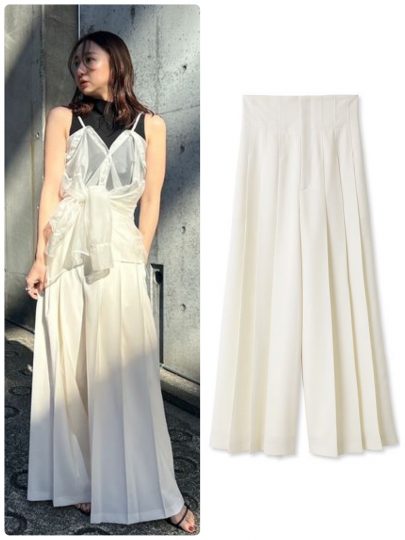 裾に向かって広がるワイドシルエットで上品かつキレイめな着こなしが叶います。パンツスタイルでもホワイトなら、カジュアルすぎず大人っぽいスタイリングになるので、お仕事からデートまで幅広いシーンに活躍しそうです。