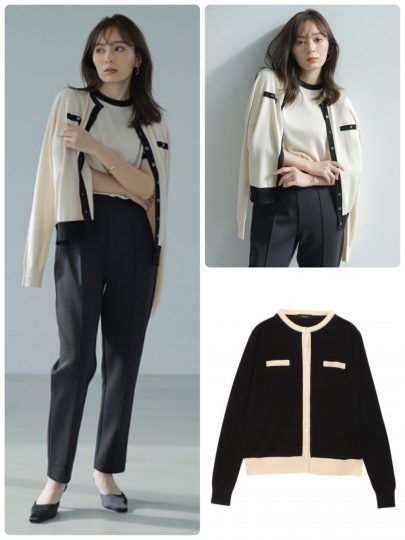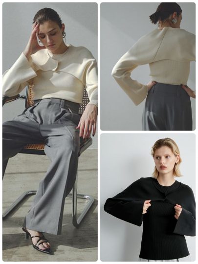 こなれた雰囲気に仕上がる短丈アンサンブルニット