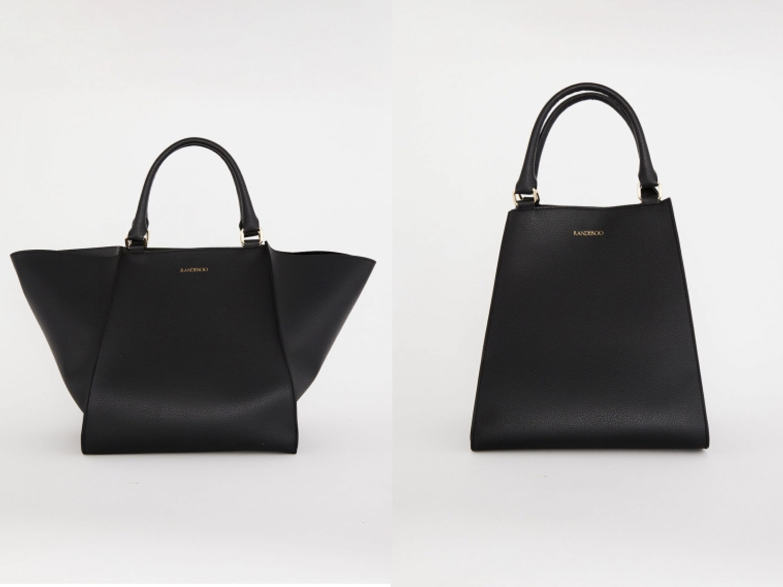 入れたい荷物によって、サイド部分が引き出され形を変更できるユニークな形のバッグ。モードなこちらも人気で、子猫が1匹入るサイズなんだとか。Gabu bag/RANDEBOO