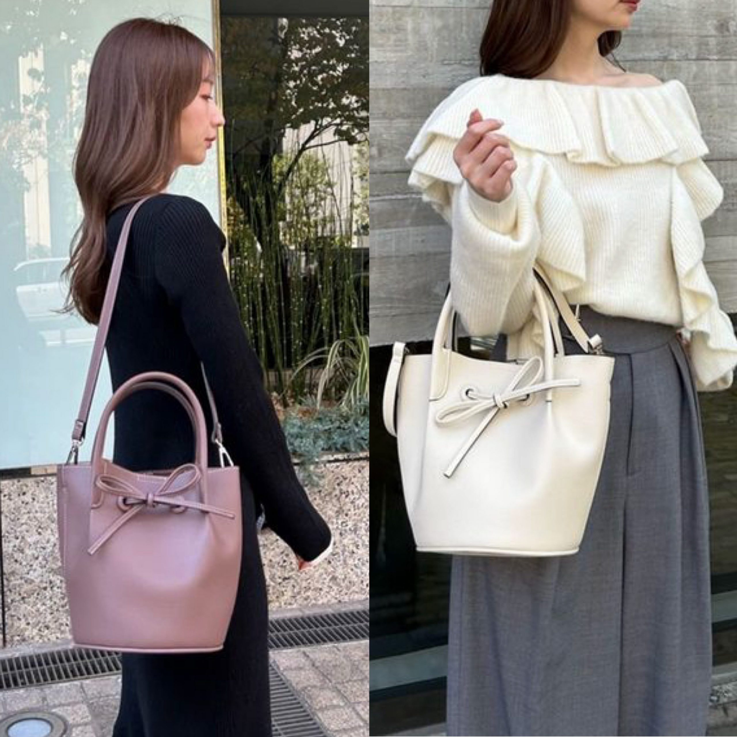 こちらはFRAY I.Dのアイコニック的な存在の人気リボンバッグ。カジュアルにもビジネスにも品よく合わせられます。好みの色を見つけたら即買いを。リボンバッグ/フレイアイディー