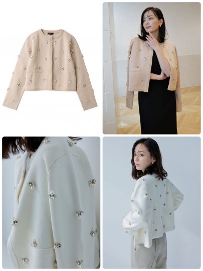 煌びやかなビジューが装着され、お手持ちのTシャツやニット、デニムに合わせるだけで品よく見違えます。もちろんワンピースにも相性抜群!