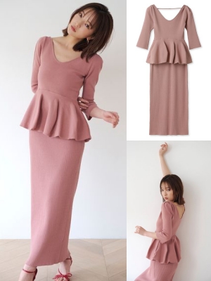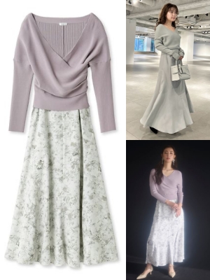 タイトなシルエットながらボディラインを拾いすぎない、ニットセットアップ。衿元も背中も大きく開いていて女性らしい抜け感もありながら、気になるウエスト周りはカバーしてくれる優秀アイテム。お花見デートでさりげなく取り入れたいなら、別々で着て着回すのもあり!