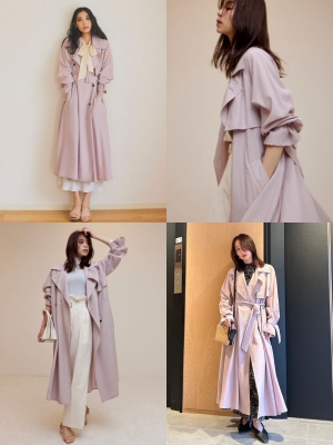 トレンチコートは春の定番だからこそ、綺麗色ピンクで今年らしく周りと差をつけて!特別なデートに着たいとっておきの1着。