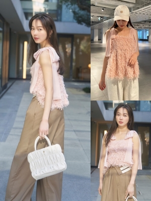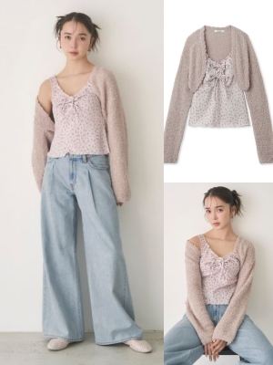 春気分を盛り上げてくれるキャッチーなデザイン♡ フリルキャミ&ボレロのセットならテクいらずでガーリーコーデの完成。