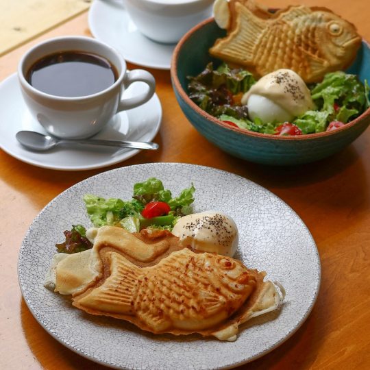開店から朝11時まで提供されているモーニングの中に自家製のたい焼きを活かした創作メニューが。