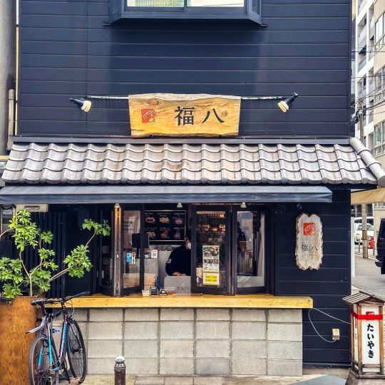 たい焼き専門店「福八」とコーヒーショップ「心斎橋焙煎所」が同居する建物の2階にカフェスペースが併設されていて、