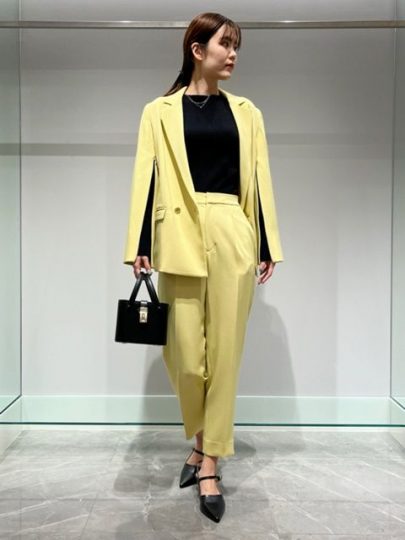 まわりの人と差をつけるなら、パッと目をひくイエローが旬。華やかなカラーは、大人数で集まる会議やオンラインミーティングでも、印象に残りそう。