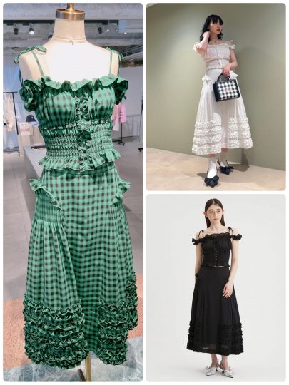 ビスチェはコルセットのようなデザインにギャザーやフリルを装着(オフショルのような着こなしもOK)。スカートは裾のフリルとボリューム感がポイント。