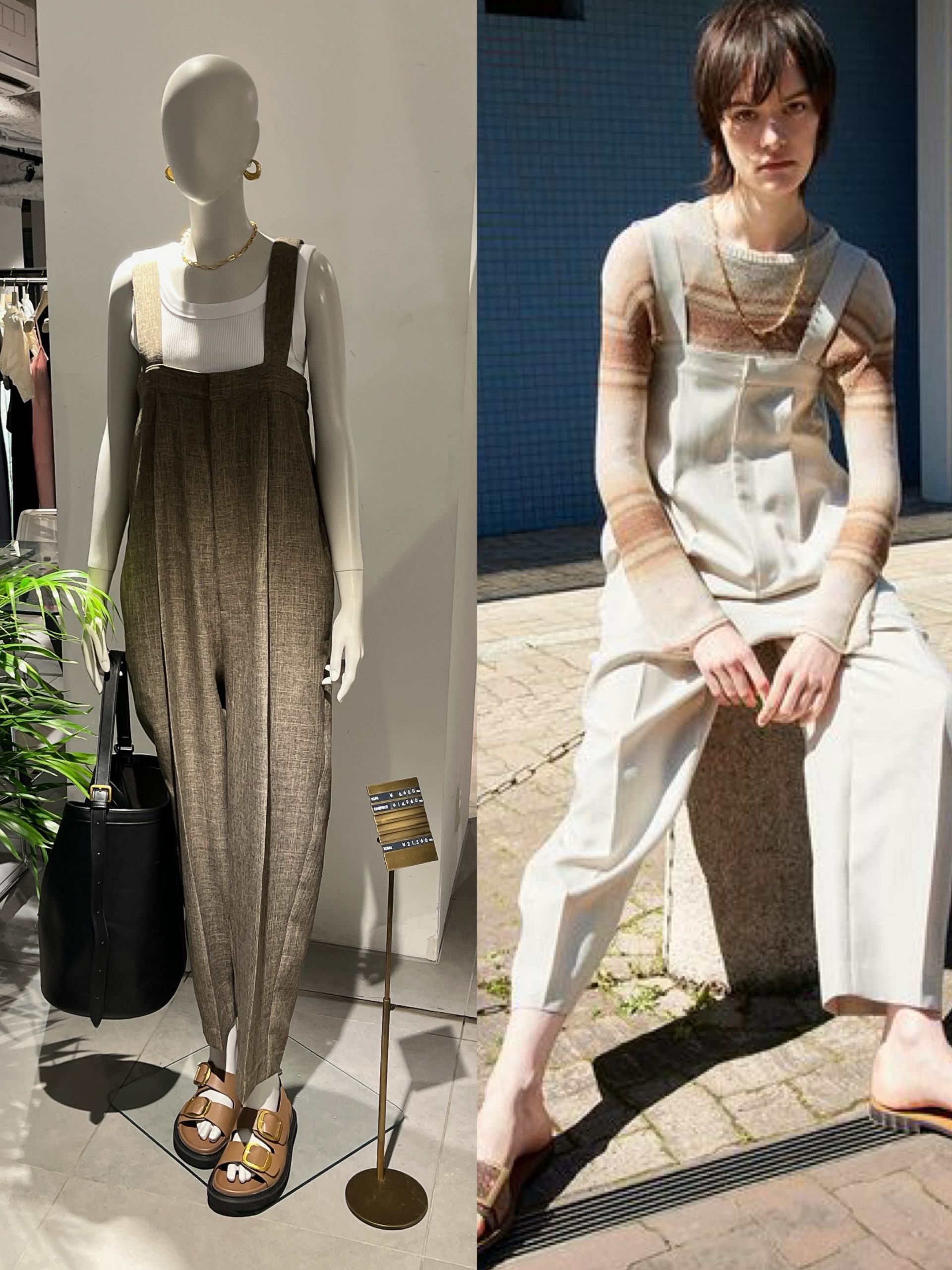 腰まわりがモードなバランスで膨らんだデザインが特徴的なオールインワン。太めのショルダーやしっかりした生地感など、ONにも着られる工夫がいっぱい。オールインワン好きにはたまらない1枚。