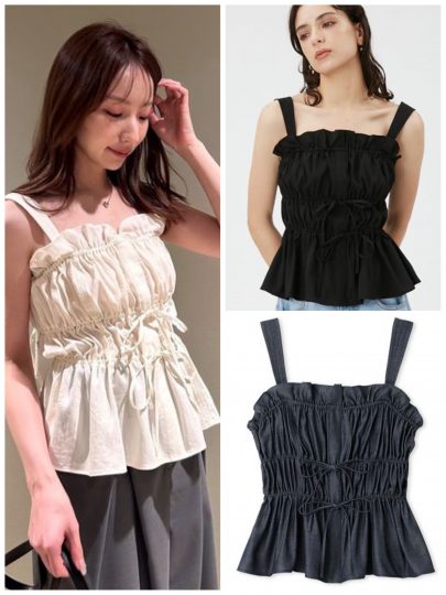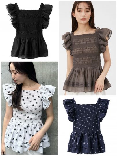 フリル袖でボリュームを出した分、身頃はシャーリングでコンパクトにまとめて。緩急をつけたフォルムとペプラムが相まって、着るだけで細見えが叶います。