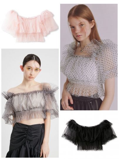 ふわふわ透けるチュールにバルーンスリーブと、ドリーミィで儚げなディテールを詰め込んで。肩を落とせばオフショルダーとしても着られる2WAY仕様です。