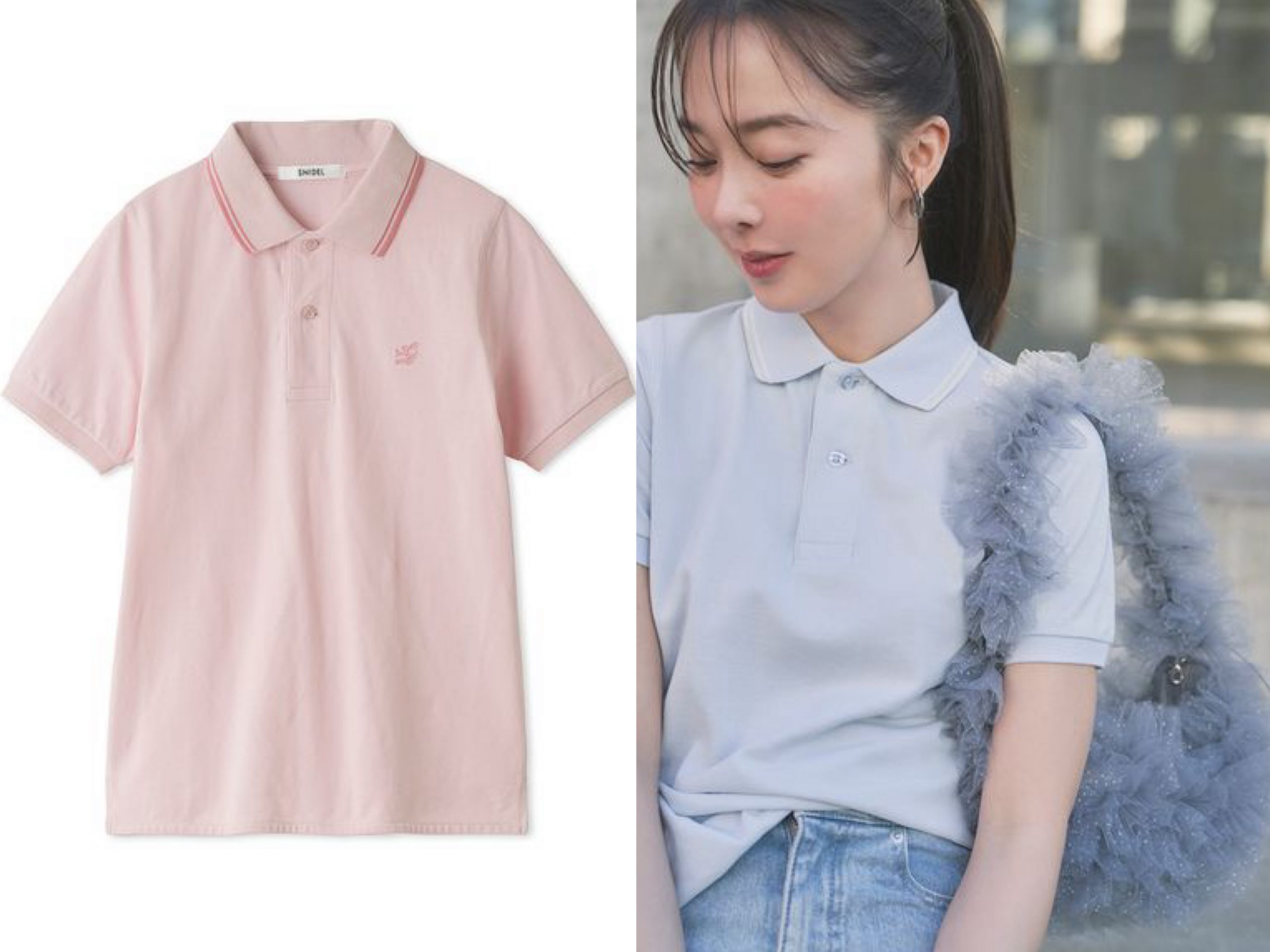 ポロニットといえば小さめで上品な襟デザイン。ホワイトやネイビーで清楚な王道スタイルにするのもアリですが、あえてパステル調の色を選ぶとカジュアル感がアップ。韓国っぽいスクールスタイルが楽しめます。【WEB限定】ワンポイントポロシャツ/スナイデル