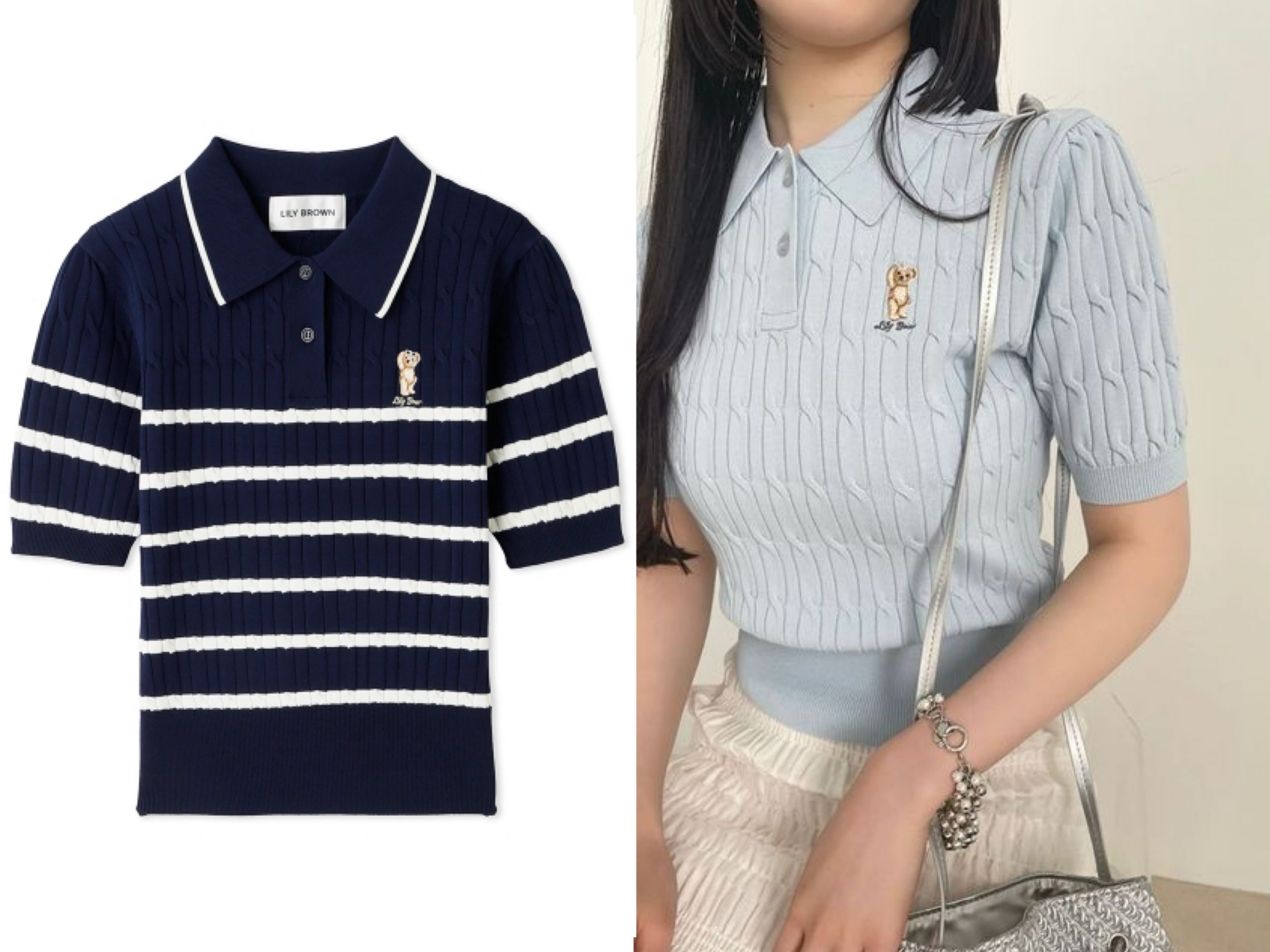 こちらは今季トレンド筆頭の、ケーブルニットで出来た、胸元のLILYベア刺繍も可愛い短丈ポロ。人気すぎて、残りあとわずか。ミニボトムとの相性が抜群にいい。【WEB限定カラー】サングラスBearポロニットプルオーバー/リリーブラウン