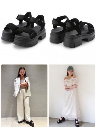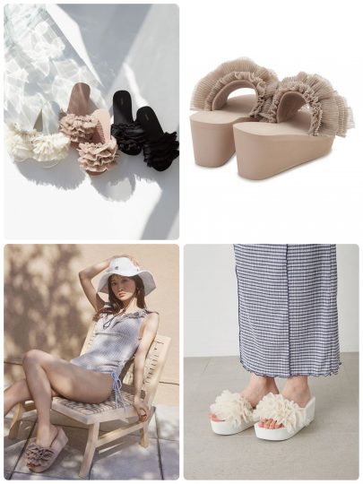 SNIDELならではのフリル付き厚底サンダルは、ビーチに限らずタウン使いもOK。