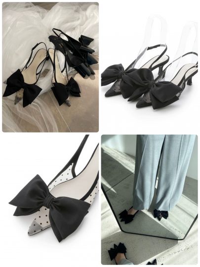 大きなリボンモチーフがキュート♡ 甲部分はドット柄のメッシュ素材でヌケ感たっぷり。