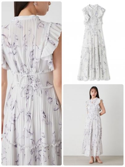 SNIDELで大人気のシフォンプリーツワンピ。今回はフリルの分量を抑えて大人女性にも着やすいデザインに改良しました。さらにウエスト周りはややゆるさを出しています。